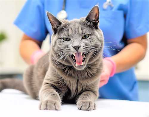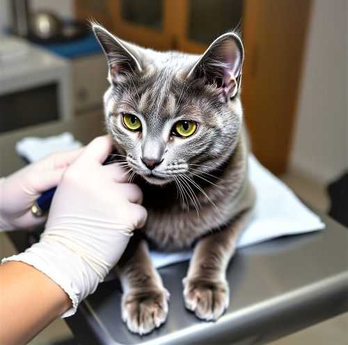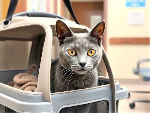 く~ちゃんの様子がおかしい、どうしたの? 熱がありそうく~ちゃんの熱の原因は、これだった?頭に傷、全身に毒が回った結果の熱?・・・病院へ の続き。10月8日、当日予約出来ました。初めての先生。(急だったので、担当医は不在)若い?男性。(医師は常勤だけで8名、他に非常勤の専門医数名の動物病院)まずは、問診。今日受診した理由(症状)。・熱がありそう・耳の下の傷・食欲不振を伝える。「どんな性格の子ですか?」って。「びびりで、私以外には懐いていません(家に来てもうすぐ13年ですが)」体重測定、4.05kg 2024.8.22、3.9kg。(エリザベスカラー着けたまま) 2024.10.31、3.65kg。(エリザベスカラー着けたまま)今回は、大きな洗濯ネットに入ったままで測ったけれど、「2日間ほとんどご飯食べていません!」と強調して言ってしまったのに、「逆に、体重増えてますよ」と言われてしまった。次は、検温。熱があるから、不調なんだと思っていたのに、「熱は 38.3℃、平熱です」って。そして、お耳の下の傷。く~ちゃんが威嚇するので、よく見えないと先生。この日は、エリザベスカラーを着けたく~ちゃんが、キャリーバッグに入るのを拒否して動くので、エリザベスカラーは着けずに、洗濯ネットに入れて行ったの。診察の時に、ネットごと診察台の上に乗せようと思ったら、すごい威嚇。私にまで。それで先生がネットごと持ち上げて診察台に乗せたのだけど、いつも通り、暴れまくる、く~ちゃんでした。それで傷がよく見えないというので、私が撮っておいたスマホの画像を先生に。それを見て、大した事はないと思います、って。え~~~? 先生しっかりと自分の目で見てよ~!(と、心の中で) AI生成画像(診察台上のイメージ、実際はネットの中に)熱もない、傷も酷くない、と言う事は、「傷のせいで毒が回って熱が出た、それで食欲もない」と、私が勝手に思い込んで心配していただけ?先生がおっしゃるには、傷と食欲不振(嘔吐)は、別物だと思うって。ふらつきもないと言うならば、脳に異常が出ているとも思えないので、取り敢えず、血液検査をしてみましょうと。・・・ 何だかよくわからくなったけれど、はい、血液検査お願いします。つづく にほんブログ村 ↑クリックして応援して頂けたらうれしいです ↓ ロシアンブルーランキング