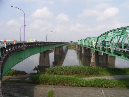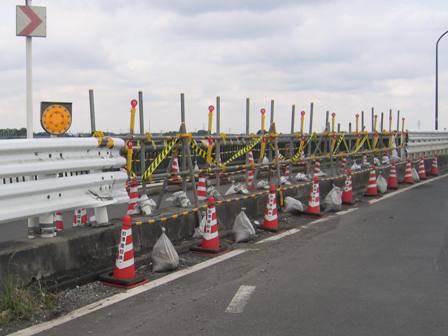 今日は曇り空から晴れやっと梅雨明けらしくなってきたかなぁでも明日また雨だって 今日はこんな所で仕事してきました日本の大動脈 国道4号線 利根川に架かる利根川橋←何時でも交通量が多いなぁ左側が下り線青森方面、右側が上り線東京方面上り線の橋は1924年完成、老朽化が激しく下流側に新しい橋を今年度中の供用を目指して工事中です先日の事故でガードレールを壊されお盆前に復旧と言うことで悪戦苦闘しましたが1日で終わりませんでしただってこんな状態だったんだもん車の排気ガスとの戦いです
