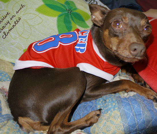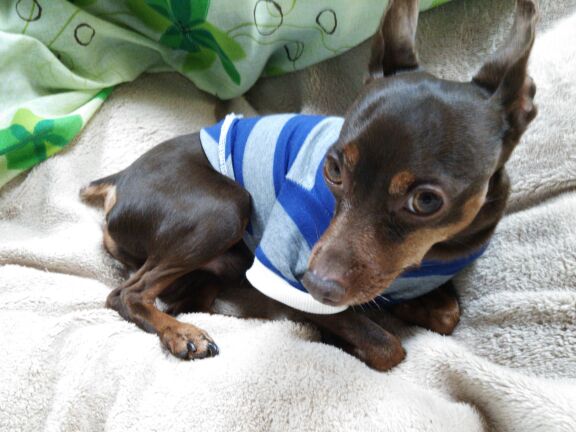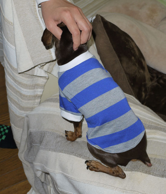 お利口に着替えたのだ。だから、構ってくれ。わ~~い。抱っこだ。いぬのしあわせ プッチーヌ 超小型犬専用 ドライ 成犬用 ビーフ練り込み粒入り / いぬのしあわ...価格:460円(税込、送料別)人気blogランキングへ