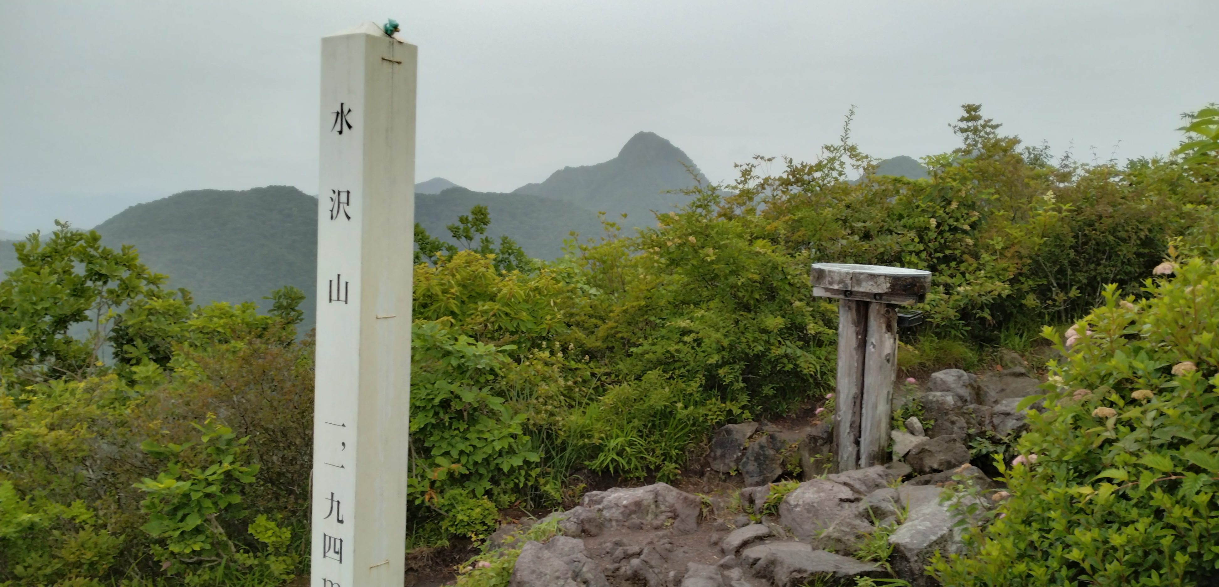 雨雲に覆われているが、水沢山は、見える。登って来よう。