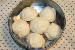 何度も作っています ケーキ生地をまとった*ちぎりパン* by ナツみかんママ今回はホシノ天然酵母のパン生地で作りました昨夜9時頃生地作り11時頃まで、冷蔵庫で冷やして室内に出しておきました。息子を幼稚園に送って朝8時半過ぎに戻って、1次発酵終了昨日、息子が好きだと思って山食作ったのですが…本当はくるみ入ったパンとか作りたいのに~息子に 「何で食パン」 と言われ、クリームパンがいい!とうるさかった。(そういいながら、食パン、パクパク食べてました)クリームパンだと朝クリーム作るのにバタバタ忙しくなってしまうので、昨夜、ちぎりパンのクッキー生地作っておきました周りがちょっと固めでしたが中はふんわりおいしかったですこのパンだと息子も文句いわず、おやつに、夕食後に食べておりました