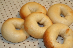 昨日の朝食、ベーグルにならなかったので、リベンジ で作りましたキャラメルチップベーグルホシノ天然酵母 で。今回は、きちんとベーグルのレシピでと思って、みかさんの本のレシピを参考に作ってみました。昨夜、生地作り400gの粉フープロに入れて、普通に作ろうとしていたのですが、我が家のフープロは粉300gまでこの前、400gにチャレンジしたからまあ、いいかしかし、ベーグルって水分少ないので、なかなか生地がまとまらず、フープロにも負担かけちゃいました。途中、手で捏ねたり、水分足しちゃったりして作りました。みかさんのレシピでは8個だったけど、ちょっと小さめ12個作りましたちょっと固かったかなもう少しソフトがよいな~今日は朝から大失敗息子(年長)が防災訓練のため防災センターに行く日だったのですが、敷物や水筒など忘れちゃまいましたー10時前に気がつき、幼稚園に電話してみたら、今、バスに乗り込んでいるところでした 今日はとっても暑かったので水筒ないのが心配でしたがお友達に麦茶わけてもらい、何とか大丈夫だったみたいです。気をつけなくちゃ