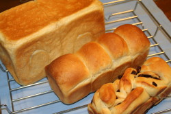 昨夜は、夫の従兄弟(床屋さん)に髪の毛切ってもらいに行ってきました。仕事終わってから切ってもらうので家を出たのは、夜の8時半頃。お土産に 角食パン 焼きました前の2つは、今日の我が家の朝食用牛乳食パン と シナモンレーズンパン床屋さんにはホームべーカリーでパン作っていた頃、最初は レーズン食パン 焼いていったのですが、奥さん(私よりちょっと年下)がパン大好きだけど、レーズン嫌いだったのですそれから、食パンばかり作っていたのですが、最近は、食パンは時間がかかるので、なかなかお土産用にできずにいました。昨日は、娘(小2)も息子(年長)も習い事がある日だったので、幼稚園のお迎えの時間や習い事の時間を計算しながら、生地作りを何時にするか??なかなか頭使いました時間あけて作った我が家用のパンも食パン焼いてる途中で焼き初め、ちょうど、夕食後に一緒に焼き上がりいつも、夕食後に足りな~い と言ってパンを食べる息子が食べたい といったので、熱々ちぎって、食べました。私もちょいと味見