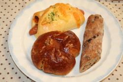 昨日は、家に残っていたパン食べてパン作りはお休みまだたくさんあったので今日の私の昼食も残っているパンで大丈夫と思っていたら、昨日、全部なくなったということでまた作らねば!ホシノ天然酵母 の生種、10gしか残っていなかったので、昨夜、200gの粉使って生地作っておきました私の好きなパンラムレーズン&くるみ 入り。ライ麦粉入ってます少なかったので手でこねてみました。水分入れすぎたのか、生地がべとべとになってしまい途中で粉、足しました。1次発酵後もやっぱりべとべとで成形しづらかったけど、何とか作って焼きました。でもおいしかったです~ガチガチに硬いパンよりちょっと柔らかいほうが好みなのでそして、おやつ用に、ドライイーストでコロネウインナーチーズまるパン300gの粉で まだ残っているけど、明日、なくなるんだろうなー息子(年長)が5月から、幼稚園で行われている体操を習い始めました。2時に幼稚園が終わり、その後、3時まで。木曜日は1時間、のんびりできる時間が増えました