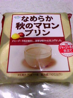 今日のおやつで食べました オハヨー乳業(株) なめらか秋のマロンプリン 70g×4個入りでございます。 栗の形はどこにもありませんが、なめらかで栗ペーストの香りが~。 ご馳走様でした とっても久しぶりになってしまったので、先月(9月)に食べたpascoさんも(ブロ友さんが紹介されていて気に入った物です) かめばーちゃんさんの真似をして押すと写真が大き くなるというやつをやってみましたポチッとな^^