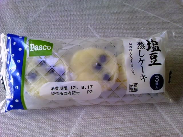 Pascoさんの塩シリーズ3品目です 「塩豆 蒸しケーキ」 塩ぬれえんどう豆入り 蒸しパン類は普段スルーしてしまうことが多いですが、値引きシールにつられて買ってみました。 底部分に塩豆が3~5粒入っており、それがよく見えるように裏返してパッケージされております。 真ん中が上から見た感じです。 蒸しケーキ部分は皆さんのご想像とおりの味かと思われます。 塩豆はしょっぱいときちんと塩を感じられます。 3品中(他2品=塩キャラメルクリームパン、塩豆 白どらやき)、一番塩を感じた品に思います。 が、好みの順は逆で、塩豆蒸しケーキ<塩豆白どらやき<塩キャラメルクリームパンとなりました。 この塩シリーズも、夏場だけなのでしょうかね? ロイヤルミルクティーメロンパンもあっという間に姿を消してしまいましたし。。。。。 思い残しのないように、塩キャラメルクリームパンのリピに励むこの頃です