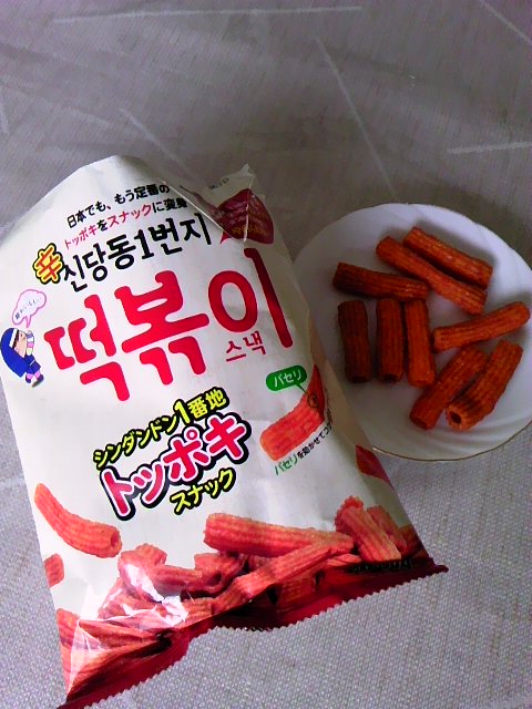 先日食べたトッポキが美味しかったので、(と言っても湯でボイルするレトルトなのだが) トッポギ味のスナック菓子も美味しいかしら?と食べてみました。 な~んか懐かしい味。 子供の頃に食べたことのある、お魚の形をしたオレンジ色の甘いお煎餅風にとても似ていました。 味はトッポキ風なので、甘いあとにカラッがきますが、レトルトトッポキに比べたら甘々です。 食感は筒状の形なので、(マカロニを大きくした感じ)お魚お煎餅風よりもサクサク感があるように思います。 ちなみにこちらは、「韓国広場」さんでお買物をしたときついでに同梱いたいました。 おやつのおともに一緒に飲んだのが、以前から飲んでみたかった桃味豆乳 かめばーちゃんが紹介されていたマルサンさんの豆乳です。 桃味美味~い こちらでは置いてある最寄スーパーがなく、たまたま見つけたのはバラ売りでなく6個パックだったのですが、 桃味が入っていたので即買で~す。 白桃の他にマンゴー、洋梨、ブラッドオレンジ、ノーマル、調整豆乳のセットでした。 ノーマル系は別として、言われなければ、豆乳飲料だとわからないほどフルーティで美味しかったです 暑い日々なので、洋梨味もすっきり爽やかでリピしたいなぁ~ 豆乳が苦手な人でも飲めるんじゃないかな (色は豆乳っぽいけどね)