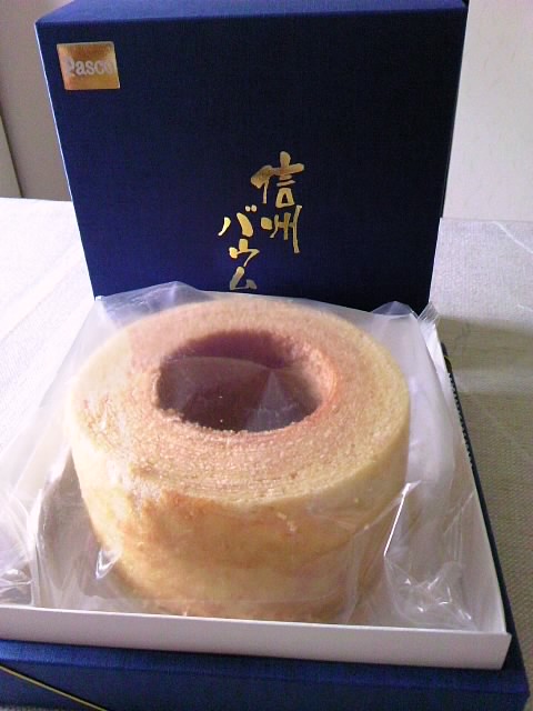 7月のはじめに届けてもらったPascoさん「信州バウム」 メロンパンやら何やらで食べるのが今日になり、18日までの賞味期限にぎりセーフでした 私にとってのバウムクーヘンに重要なしっとり感は申し分なく、 しっとり、やわらか、やや甘め。とっても美味しいと思います。 贅沢言えば、もう少しきめの細かさと密度が欲しいです。 お値段的には1500円と、相場なのかな?と思いますが、 「メロンパンが10個以上買えるよなぁ~」と思ってしまうのは私だけでしょうか。。。。 しっとり&きめ細かさで、今のところ満足度NO.1は島田屋さんかな