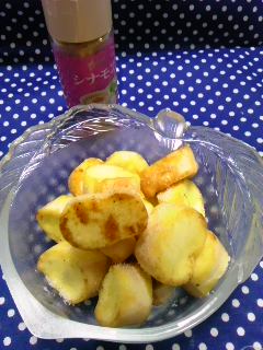 jasmineさんのブログで紹介されていた、お麩を使ったラスクを拝見して、 私も~っと、先日作って食べてみました。 シナモンバージョンとってもかる~い、サクサクのラスク風が出来ました 汁物に入れるお麩よりとっても美味しい! お麩が使いきれない時にお勧めですよ~。 詳しくはjasmineさんのブログ で見ていただければと思いますが、 バターを溶かしたフライパンに小町麩をそのまま入れてバターをしみ込ませながら、両面焼きめをつけて、 グラニュー糖を加え溶かし絡めて出来上りです。 グラニュー糖はすぐ焦げ付いてしまうのでご注意です。お好みで後からまぶしても良いのではないかと思います。 きな粉やチョコでアレンジしても美味しそう~! jasmineさん、簡単で美味しいレシピをありがとうございました