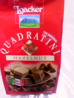 先日知人から貰ったお菓子で、意外な美味しさにはまりました ローカー クワドラティーニ ウエハースのお菓子は自ら購入した記憶はなく、いままで興味もなかったのですが、 先日この「ヘーゼルナッツ」味の貰い物を食してビックリ 「ウエハースってこんな美味しかったっけ?」と大満足でいただきました。 イタリア語で小さな正方形という意味をもつ「クワドラティーニ」は1994年発売の大ヒット商品らしいです。。。。知らなかったぁ~。 一口サイズのキューブ型で食べやすく、甘すぎない濃厚なクリームが5枚のサクサクウエハースで4層に重ねられています。 あまりに美味しかったので、他の味も試してみたくなり自ら購入 左 「カプチーノ」& 右 「ティラミス」味 です。 中にサンドされているクリームにいろいろな種類があるようです。 最初の「ヘーゼールナッツ」味の感激が大き過ぎたせいか、こちらは感激やや薄れ、 ちょっと味がぼやけ気味に感じられたんですけど、この2つでは「カプチーノ」の方が好みでした。 他にも「バニラ」や「チョコレート」等、 全11種類あるみたいです。 機会がありましたら全種類制覇してみたいですね こちらは、冷蔵庫で熟成してました物件ですごめんなさい、リピは無いです。って言うかもう店頭にも並んでないしね。。。。