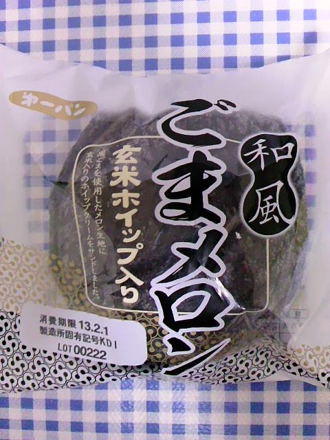 節分ですね。恵方巻き食べましたよ。。。。 でも本日も菓子パンです(といっても先日食べた物件なんですが。) 「ハチギョウ」さんが以前ご紹介されていたのを拝見していたので、「あ、これかぁ~」と手がのびました。 第一パン 和風ごまメロン(玄米ホイップ入り) 真っ黒で海苔が巻かれたおにぎりみたい 「ハチギョウ」さんが言われてたとおり、ところどころガリガリと面白い食感(外側)がします! この外側の生地の味。。。。ひなあられ?うぅ~ん?。。。 雷おこしの味みたいだぁ~。 外側はな~んか不思議な味と食感で美味しかったです。 中は普通のメロンパン生地ですがちょっとパサツキが気になりました。 私的にはクリームはなくてもいいかなぁ~。 今日スーパーをのぞいて見たら、パンコーナーも2月の新商品に様変わりしていて、 すでに、この「ごまメロン」も「まめおさん」も棚から消えておりました。 全部売り切りということはないでしょうから、それらはどこに行くのでしようね? まめおさ~ん