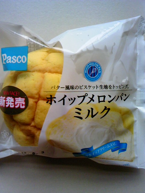 おはようございます Pascoさんです。 「ホイップミルクメロンパン」 バター風味のビスケット生地につつまれ、中にはミルクホイップクリームが入っています。 Pascoさんに限らず、メロンパンはまわりのビスケット生地と、内側生地の口あたりが違うので、飲み物は必要かと これは中身のホイップクリームもあり甘~いです。 メロンパン好きな私にはクリーム入りもですが、いまだPascoさんノーマルメロンパンは無敵です。 今日は412kcalのハイカロリーな美味しい朝ごはんでありました