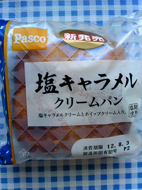 ご訪問ありがとうございます Pascoさん です 「塩キャラメルクリームパン」 ホイップクリームと塩キャラメルクリームが入っている四角いクリームパンです。 パン皮の表面もつるっとした感じではなくてちょっと変わってました。(ガサガサ?) 塩麹がどこに使われているのかが不明ですが。。。。表面なのか? ホイップクリームがたっぷりで、塩キャラメルクリームがほどよく(微かに塩)美味しくいただきました (362kcal) こちらは正真正銘のキャラメルしーちゃんのストック分で~す。