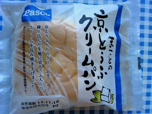 何度かスルーしましたが、やっぱり買ってしまいました。先日食べた菓子パンです Pasco まことの京とうふ クリームパン パン生地に京とうふクリームが練りこまれているのですが、 中身のクリームの方も生クリームでも、カスタードでもなく、京とうふ入りのクリームということで。。。。 クリームの色も白く、豆腐風味な淡白なお味のクリームでした。 普通の豆腐と京とうふの違いは私にはよくわからなかったですが 1度食べたら満足という感じでしたね。 ちなみに316kcalと豆腐のせいか、ややヘルシーな?カロリーでございます。 ちょっと前になりますが、かめばーちゃんさんが紹介されてました。こちらもやっぱり買ってしまったか物件です