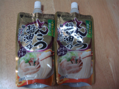 先日参加したサンプル百貨店のイベント、第41回RSPin白金台で頂いたミツカンの【とんこつ醤油つゆ】を紹介します【とんこつ醤油つゆ】はじっくり煮込んだ豚骨・鶏ガラスープに野菜スープを加えた、濃厚なコクのとんこつしょうゆ味ベースのスパウト付パウチ入り濃縮つゆです。一人前からお好みで量が調節できるので、麺類、鍋物、炒め物などこれ1本で簡単においしく仕上がります。早速、冷蔵庫に残っていたおうどんで作ってみました一人前が簡単に作れるのでとても便利ですミツカン とんこつ醤油つゆ★税込1980円以上で送料無料★ミツカン とんこつ醤油つゆ(150g)