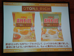 先日参加したサンプル百貨店のイベント、第40回RSPinお台場で頂いたカルビーの【ポテトチップス オトナリッチ チキンコンソメ&サワークリームオニオン】を紹介します【ポテトチップス オトナリッチ チキンコンソメ&サワークリームオニオン】は、「ウェーブカット」の厚切りじゃがいもをじっくりかために揚げた「釜揚げ製法」で、新食感が味わえる新形状のポテトチップスです。さらに大人向けに、味付けはしっかりと贅沢に仕上げています。いつも食べているポテチと違ってかなり堅めの食感です味が濃い目なのでお酒のおつまみにちょうど良いなあと思いました