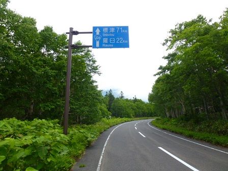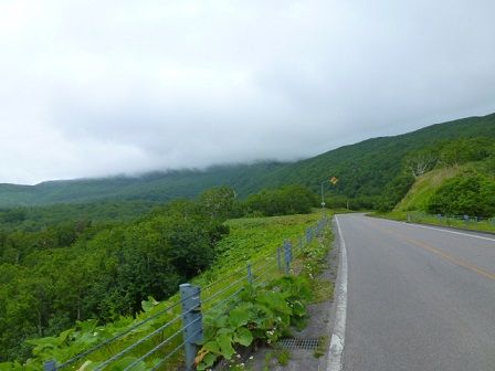 20分ぐらい走って国道に合流するとすぐに上り坂が始まり、北海道らしい直線的な坂と大きいRの峠道を行く。
