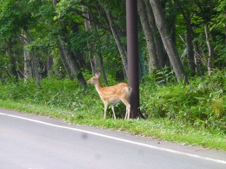 宿を出た先でエゾシカと遭遇。
