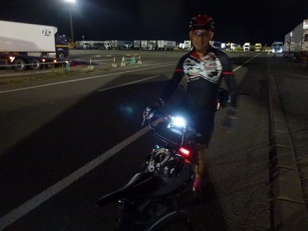 国道に出ても交通量はかなり少なく家なども無いので、周りの状況が全く分からない闇の中を行く。
