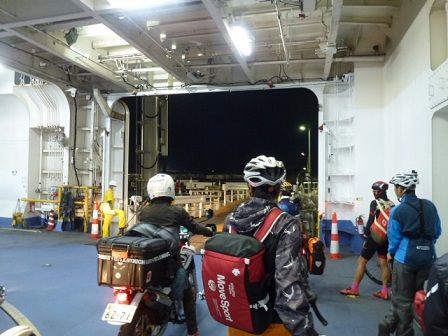フェリーの中で朝を迎える。