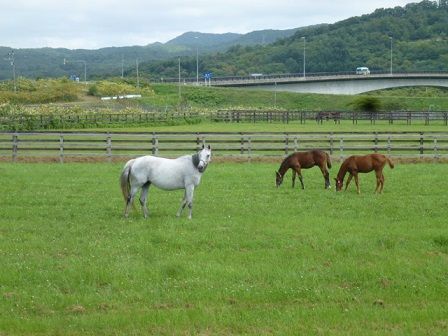 競走馬で有名な日高も近いということもあっていくつか馬の放牧を見ることができた。