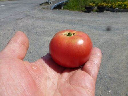 美味しそうなトマトがあったので買ってハルさんと半分ずつ食って水分補給。