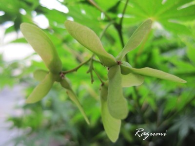 雨粒の大きい雨さすがに外の撮影は無理でした今日は家の中からパチリ 家の西側の窓を開けると目の前にモミジの木があります モミジの実4枚羽根2枚羽根プロペラの様ですネ 秋の紅葉もいいけど...私は毎年これが楽しみなんです 軒下の棚にある、セダム 100均のミニバケツ 4月25日に作った寄せ植え⇒日記へいい感じにモリモリっと そして・そして・・・蕾がありましたどんなお花が咲くのかしら??? どんどん雨と風が強くなって来てます台風は温帯低気圧に変わったと言うけど...心配ですね 応援のぽっちとても励みになっておりますにほんブログ村いつもありがとうございます