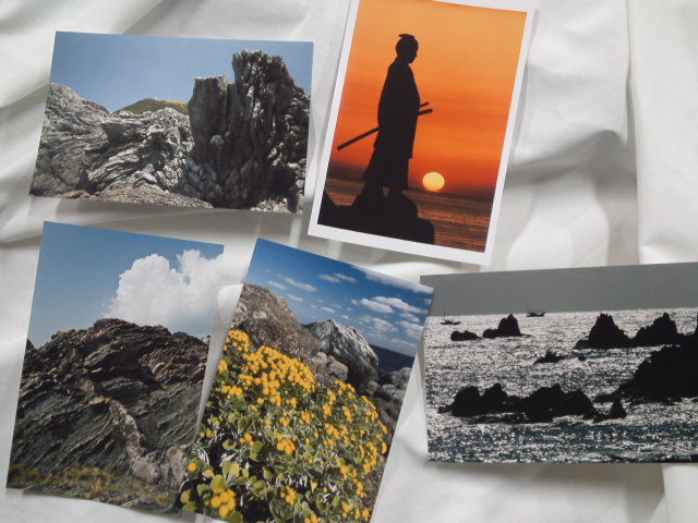 室戸岬の輝く海や、特徴的な岩岩。これから見頃の花・シオギクなど。【室戸ジオパーク】そのものです。