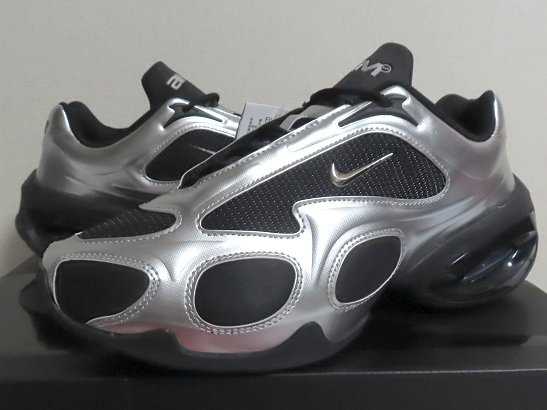 WMNS AIR MAX MUSE FV1920-001 BLACK/METALLIC SILVER ¥20,130-最初は2024年11月にTHE FOUR-EYED × LITMUS POPUP SHOPで先行発売され、12月にatmos他一部小売店にて、2025年1月、5月にもatmos他にて再販され、8月1日(金曜日)にnike.comや一部小売店にて再販されたWMNS AIR MAX MUSEを購入しました。WMNSモデルなのですが、このサイバーチックなカラーリングだけは男性の自分でも気になりましたね。シルバーとブラック締まった配色に、インパクトがあるヒールの高さに、これまでに無いようなアッパーデザインが購入欲を高めました。試着した感じはつま先は気持ち細い感じはしますけど、そこまで気にならないので普段履いているAIR MAXのサイズで良いかなと思いました。あとこのボリュームのあるヒールのクッショニングがかなり効いてますね。外見が気になっていて買うチャンスを逃していましたが、ようやく今回の再販分を店頭で購入する事が出来ました。これから下ろすのが楽しみでなりません。