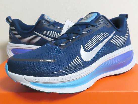 VOMERO 18 HM6803-401 BLUE VOID/METALLIC SILVER4月に発売になったVOMERO 18を購入しました。RUNNINGカテゴリーのモデルなんですが、評判が良いみたいなのと、ボリュームのあるZOOM XとREACT Xの二重構造ミッドソールの感触がどんなものかと気になっていました。それでも走るわけではありませんが…。シュータンがアッパーとサイドで貼り付いて一体型なっている仕様で、足を入れるとガッチリフィットするような感じでしたね。それにより足が中で遊ばないのでしっかり走れるのかなと。サイズ感としてはAIR MAXシリーズと同サイズで良さそうな気がします。今回カラーリングが気に入って、これなら普段でも履けるかなと気になっていたところ、9000円を切る値段で売っている所を見付けて購入してみました。出掛けて履いた時どんな感じになるのか、楽しみです。
