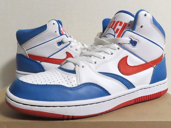 SKY FORCE 88 MID 454452-101 WHITE/TEAM ORANGE-VARSITY ROYAL-TEAM ORANGE2011年7月に発売されたSKY FORCE 88 MIDを購入しました。(※BOXは他のモデルの物を使用しています。)個人的に地道に探しているSKY FORCE 88ですが、今回はホワイト×ブルー×オレンジの配色を破格の¥1,500-位で購入する事が出来ました。洗えばなんとかなるかな位の状態でしたが、ブルーのレザー部分が洗って少し色落ちしてしまいました。まあ安く手に入っているのでその辺は目をつむって我慢かなと、あとミッドソールの一部が若干黄ばみがあったので、対処しました。今後も良いカラーは地道に探していきたいと思っています。