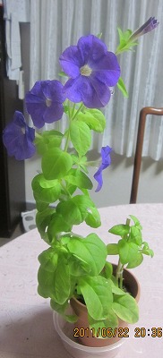 今日は梅雨の中休みで暑いでした四カ月ぶりにお墓参りに行って来ました。こんなにお墓参りに行かなかったのは初めてです。朝出かける時は花の色もよくわからなかったのですが帰ってきてびっくりしました紫色のペチュアの花でした。後5~6個のつぼみも出て来ました。あんなに小さいたまごが花を咲かせるなんて感動です。少し開いていました
