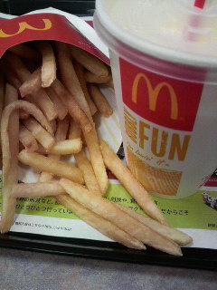 ポテトを口に放り込んでバナナシェイクをちゅーっとやると、