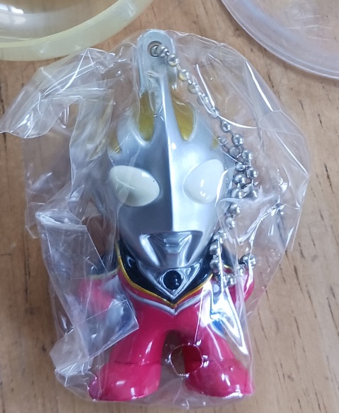 平成13年のカプセルトイ。 ウルトラマン(コスモス)テレビ放映時に制作されたモノ。電池が内蔵されていて、絶縁体を除いて、背部のボタンを押すと、光る仕様になっているようです。経年による埃汚れやシミはないのですが、湿気のあるところに置かれていたせいか、説明用紙の裏側はインクの色も剥げ落ちて、アンケートの締め切りすら読めない状態になっていました。 これはガイアの最も強い、番組後半のモードですね。 ディフォルメフィギュアですが、とても良くできています。 ハンドル回して、¥200でしたが、これと同等品を、今、食玩で発売するとしたら、¥500以上は間違いないでしょう。 ちなみに、このブログの最多閲覧記事は、既に知人のお孫さんに差し上げている、ウルトラマンティガのサウンドバトラー。 久々のテレビ放映されるウルトラマンでしたので、今では制作されないようなモノも、作られていたのだと思います。