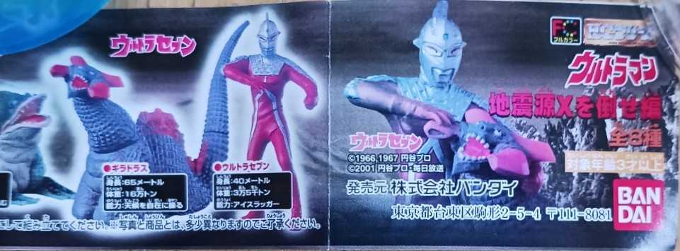 入手完全忘却品。ウルトラマン(コスモス)放映時のカプセルトイですね。2001年から2002年にかけての商品。ラインナップは、コスモス関連とセブンとギラドラス。セブンの光線技等の決めのポーズではなく、大人しめのスタイルだなと思いきや、ラインナップ用紙を見ると、ギラドラスの頭を両腕で押さえているような恰好になっています。つまり、ギラドラスも入手して、2体組み合わせて飾るべしという、メーカーの販促購入企画のようです。いつものビニール袋内の組立は、できるような状態に梱包されていないので、そのままの撮影となりました。説明用紙を見ると、3機搭載は、クオリティによっては、お得感がある感じですね。入手していたような気もしますが、定かではありません。