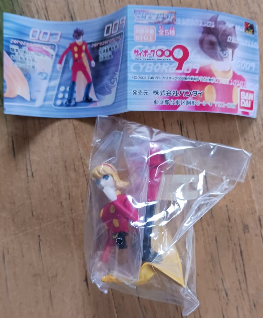 入手忘却品 平成13年の品物。 平成ライダーでいえば、「仮面ライダーアギト」の頃に制作されたカプセルトイですね。「サイボーグ009」は食玩もでていたのですが、何しろ、「島村ジョー」を入手できていないのが、何とももどかしい。 アニメのあの髪型をどう再現しているのかというのが、とにかく気になっておりました。 サイボーグ009の平成版も、平成13年に放映開始だったようなので、それに伴って制作されたカプセルトイだと思います。