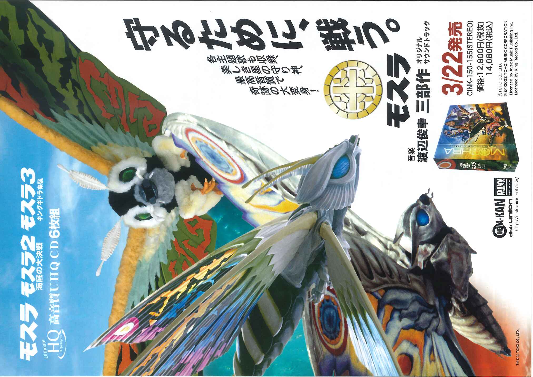 会場貸しもしている職域の映画館に用事があって赴いた時に、カタログラックのようなものが、立てかけてありまして、おびただしいほどのフライヤーがある中に交じっていたモノです。映画館には上映予定映画の告知のフライヤーが置いてあるのは、映画館に足を運んでいる方であれば周知の事でしょうが、まさか、サウンドトラックのフライヤーが置いてあるとは、思いもしませんでした。 劇場の方に尋ねたら、ディスクユニオンさんから送付されてきたとの事。 私の「お気に入り」にディスクユニオンさんもあるのですが、プログレのトップ画面になっているので、怪獣映画のサントラが告知されることは、ほぼ、無いと言ってよいでしょう。 私の頭の中などは、ディスクユニオンさんと言えば、「プログレ」になっているわけですが、音楽を中心とした多角経営をされているわけでして、営業努力の一端をかいまみたような感じです。 このフライヤーは、デザインがとてもカッコイイわけですが、よーく見ると、写真ではないのです。 どなたかが、描いたものか、「AI」とかが写真をもとに作業をしたのかまでは、解りませんが、水中モードの横顔などは、まるで絵筆で描いたようなタッチです。 裏側はこんな感じで、忘れていたタイトルもありました。