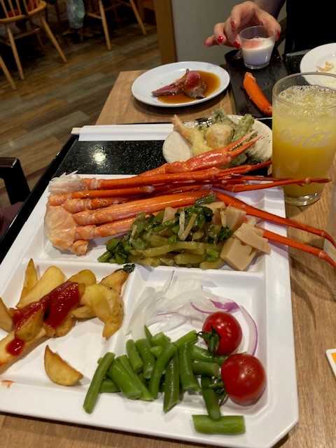 屁理屈で妻をけなしまくる よからぬ夫の父。そんな父に拒否反応を起こしている母。この二人が2人きりで旅行に行かなくなって数年。わたしと次男がクッション材となり四人で 格安プランのお宿に泊まるのが定番となっています。今年は年初めに行った先でコロナを発症して さんざんでしたので今回はリベンジ。カニ好きな父のためにカニ食べ放題の宿を選びました。写真のプレートは 前立腺がん・高血圧・肥満型・大動脈瘤モチの父のセレクトです。一時母が頑張って食事を見直して-10キロまで行ったのですが「 好きなものを我慢するなら死んだほうがいい 」宣言をし、すっかり元通りの父であります。お宿、立地がよろしく、どこからでも緑の杜が見えて大変癒されました。お風呂もモダンな感じで、満室だったにもかかわらずなぜか毎回貸し切り状態で 最高でした。食事もそれなりに美味しかった。バイキング方式だけど、お肉を焼いてくれたりお寿司を握ってもらえたり、サーブしてもらえるので出来立てをいただけました。近隣に 瑞鳳・佐勘・緑水亭 等、いいお宿がありますがこちらリーズナブル重視で行くならば おすすめです。秋保温泉 秋保グランドホテル