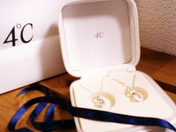 プレゼントってほんとうれしいですよね(´∀`*)+;☆;+ 4℃のペアネックレス +;☆;+かわいいケースに入ってました(´∀`*)左)女性用。ジルコニアが埋め込まれていてとってもキレイ☆右)男性用。チェーンが女性用に比べて少し長め。つや消し加工がしてありマットな感じでステキ。男性用の方にひとめぼれして店員さんに見せてもらったら「ペアなんです。」とのこと。でも男性用もぜんぜん“ゴツ”くなく、つけてみた感じステキ。「男性用はおとなしめだから仕事の時はこっちでお出かけの時は女性用をつけたら?」と店員さん。そのアイデアナイス!!さすが店員!!そのひと言でこれに決めました。1つで¥20000だと思っていたけどなんとペアでこの値段。ちょっと得した気分♪物をもらうのはニガテで、実はこんな高価?な物をもらうのは初めて。ありがとうございますだーりんさまさま。。まっ、訳アリなんですけどね~・・いやいやホント幸せです私。。Designed by unamama