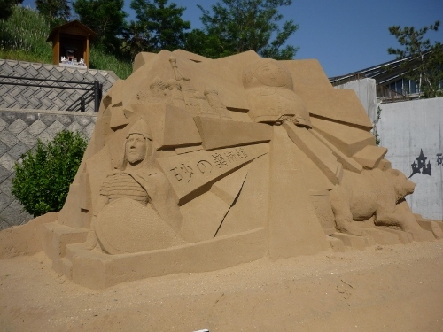 鳥取~餘部ツアーその2です。海沿いのクネクネ道を途中経由しながらR178を西進して鳥取砂丘まで帰ってきました。さすがに僕以外は津山在住者ですから、今更鳥取砂丘散策は必要ありません。本日のメインテーマの「砂の美術館」に直行します。 ちなみに入場料金は大人¥600円です。今年のテーマはロシア。ちなみに昨年は東南アジアでした。 毎年冬の間に砂像を製作して、春から冬まで展覧しています。毎年ネタが変わるので、ハマッってしまった人は毎年リピートすることになります。(まあ、僕が ハマッてしまった訳で・・・。) チャイコフスキー先生と「白鳥の湖」 トルストイ先生と「戦争と平和」 このギミックこのスケール 今年は、ひとつひとつの像本体が大きなものが多いような気がします。っていうか、昨年が小さい像を織り交ぜた作品が多すぎたのかもしれません。昨年のレポートhttp://plaza.rakuten.co.jp/883rlove/diary/201402220000/相変わらず、最上段の建造物の細部にわたるまで、手抜きなし。すばらしいギミックです。外の展示へ行ってみましょう。<その3に続く>
