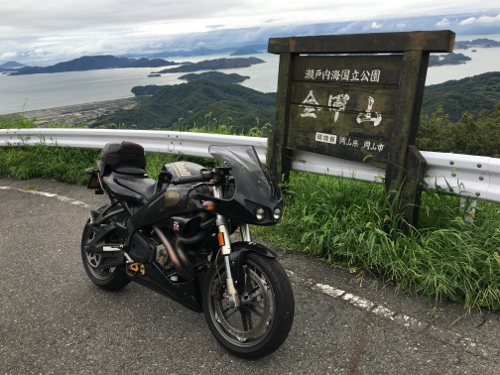 【ツアー催行のお知らせ】本日の'16ツアー Rd08は催行します。(平成28年8月27日 6:30)っていうことで、行ってきました瀬戸内国際芸術祭。今日は自由時間があまり時間がないので、宇野港界隈に限定して回ります。Rd08に先立ち、金甲山の下見に寄りました。ひと昔前の、岡山の峠三本柱といえば金甲山、鷲羽山、種松山でした。当時、山頂の駐車場はレーサーレプリカで溢れてたのにな。ところが、この有様・・・。あがってくるのはヒルクライムサイクリストのみ・・・。路面の舗装もボロボロ。立木の管理もされておらず、各コーナーでは、枝が垂れてて、ライダーに当たりそう。この苦々しい、思い出のコーナー・・・。ここの舗装は良い方。亀甲状態の箇所もたくさんありました。かまぼこ型のセンターラインも傷み放題。まさに「兵どもが夢の跡」って感じです。今日のツーリングで、お昼からの「みんなで登山」は、ないですね。さて、Rd08に戻りましょう。ボラードコーヒーに9:00集合。今日の参加者は、バンディット1250とダイナ1450。ダイナ1450は、CB1300SBから乗り換えです。お店おすすめの「カフェラテ」飲みながら、メンバーを待ちます。ちょうど飲み終えた所で全員集合。やっぱ、カフェ集合ありやわ。作品No. 183終点の先へ小沢敦志放置自転車をアート化するプロジェクト。鉄を熱して叩いて溶接し、新たな自転車に再生。レンタル可能で、港と鉄道の終点駅が隣接する宇野の町を走り回れる。今日はこのアート自転車で、宇野港界隈の作品を巡ります。今日の愛車は、このオレンジ号。足も確保できたことですし、まずは、朝食に行きましょう。玉野魚市場さんのシーサイドマートここはイートインコーナーがあって、買った魚介類をその場で食べることができます。更に+100円で、ごはんとアラ汁が出ます。今日のお昼は海鮮丼の予定ですから、刺身類はやめて、火入れしてある香ばしいものを頂きます。サワラのたたきとタコの塩ゆでをチョイス。「ごはんは?」「ごはんは11時からになります。」「・・・。」現在10時20分、待てません。サワラのたたき棒にかぶり付き、ワイルドにタコを引きちぎってほおばりました。気を取り直して次行きましょう!作品No. 186海の記憶内田晴之軽やかなチタニウム素材の彫刻は、中に海水を秘めている。そのフォルムは、人を導く船であり、生命を運ぶ種子であり、広大な海のひとしずくでもある。周囲の光景を外側の鏡面に映しながら、この船はゆっくりと空を泳ぐかのようだ。玉野電鉄跡のサイクリングロードを北上します。玉野電鉄自体を初めて知りました。こんな感じで、アートサイクルツーリングです。町中でなんじゃこりゃを発見!作品No. 185士官BigMac▷破滅喘鳴▷『弱弱様Ⅱ』『遅延龍 ❷』〆山下拓也展示空間と格闘しながら作品づくりを行ってきた作者は、今回宇野の町中の現在は使われなくなった建物と格闘する。壁を切り抜き、貼り合わせ、居場所を失ったキャラクターを出現させる。特異なモチーフ、制作方法によってゲーム性のある禍々しい世界観を提示する。次々行きましょう!作品No. E34宇野港「連絡船の町」プロジェクト瀬戸内海や宇野港が担ってきた役割を再確認し、あらめて「連絡船の町」として特徴づけるため、第1回「撮り船」フォトコンテストの優秀作品を街中に展示する。また、第2回「撮り船」フォトコンテストを実施。駅東創庫 Gallery Minato 宇野駅の東にある美術家・工芸家の工房と展示ブースのある施設です。作家さんが創作作業を行っていました。入り口近くの発砲スチロール彫刻作家の高嶋幸市さんと少しお話ができました。淡路島の巨大おっ玉葱を作った作家さんです。2ブース作家入居募集してました。生活の保障があれば、すぐ入居するよ。(そんなウマい話はないって)この駅東倉庫が出来て、もう10年にもなるんですね。沢山の作家さんが巣立っていったみたいです。さて、再度駅に戻ってきました。作品No. 187JR宇野みなと線アートプロジェクト今春誕生するJR西日本の観光列車「La Malle de Bois(ラ・マル・ド・ボァ)」と合わせて宇野線の4駅をアート化し、本州から島々への玄関口である宇野港への移動時間も楽しめるプロジェクト。色は白と黒によるシンプルな構成ながら、駅ごとに変化する風景に注目したい。玉野駅前の「海からの贈り物」も、リニューアルされています。中心のオブジェをゴールドメタリックに再塗装し華やかにする。また、動物たちに、ロックスターやマジシャンを連想させる衣装を着せ、華やかでユーモラスな、かつ不思議なものとする。風にそよぐフリンジやマントで、ブロンス彫刻の重く固定的な印象に動きを与え、翼や花の形態といった自然界の別の生命体の要素とも合体させる。ここでトラブル発生。お昼に海鮮丼を食べようと企てていた「うの食堂」さんが、今日お休み?みたいです。ずっと準備中のまま・・・。暑いし、ちょっと涼みたいってことで、おまち堂さんで、かき氷休憩にしましょう