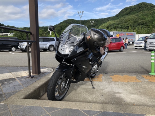 九州ツー2日目昨日21時過ぎには寝たので、4時半過ぎに目が覚めました。(飲みすぎで、のどが渇いた)せっかくなんで、支度して5時半出発です。この時間でホテルから5分くらいのところでやってるラーメン屋がありました。いやいや渋滞の前にちょっとでも南下しましょう。勇んで出発しましたが、ちと眠たい。先を急ぎたいですが、60㎞刻みの、「休憩過多」で進みます。さらに、お腹も減ってペースが上がりません。(昨日あんなに食って飲んでしたのにね・・・。)ちょっと「しっかり休憩」をはさみましょう。バカ食いすると、更に眠たくなるのでちょっぴり控え目。熊本ラーメンを朝ラーします。今日も予報は猛暑。日が昇ると、もう暑いわ。自販機限定の怪しいカラーリングのジュース発見。サントリーPOP?フルーツパンチ味スゲー色だな。鹿児島ICで指宿スカイラインに乗り換えて知覧へ。指宿スカイラインも通って見たかったのよ<指宿スカイライン>薩摩半島を南北に縦断、温泉で有名な指宿市と県都・鹿児島市を結ぶ自然景観に恵まれた道路。高速コーナーと直線が連続する総延長50.9kmの道で、小高い稜線の上を滑空するように走ることができます。正式な呼び名は主要地方道「指宿鹿児島インター線」。指宿市側ではそびえたつ開聞岳が、鹿児島市側では錦江湾に浮かぶ桜島や対岸の大隅連山が一望できます。途中、道間違えて遠回りしたけど、予定通り、開館時間過ぎに到着。込み合う前にゆっくり見れそうです。ここへは戦闘機見たさで来ました。陸運一式戦闘機「隼」館内にも同じ機が展示されています。映画のセット用に作られたレプリカです。 陸軍4式戦闘機「疾風」これは、米軍が回収して完全レストアしたものを、紆余曲折あって、結局払い下げを行って、現在知覧へ集館されたものです。完全レストア時は、飛行できていたのですが、京都嵐山美術館時代の展示状況が拙く、機体の一部が腐食して飛行不可状態になったようです。エンジン等は生きている様なので、外装を取って展示してほしいですね。疾風のコックピット電子制御なんてなかった時代の飛行機です。操作系は、すべてワイヤー制御なんでしょうね。胴体へのメンテ用人孔が胴横の日の丸の部分にあるので、そこも開けて展示してほしかったな。そこから機体ワイヤー制御の一端が見えるはずなんだけど。ここの場所(平和会館)で、不謹慎かもしれないですが、現存する旧日本の航空機を展示している個所は全国的に見ても限られています。これらを産業遺産とした視点での、航空機展示をしてもらいたいものです。(GHQ占領時代に7年航空機開発を禁止されていたこともあって、戦前の航空機遺産が極端に少ない。)陸軍0式戦闘機。いわゆるゼロ戦です。35年間眠っていた海底からの引き上げ状態のまま展示されています。館外には特攻航空隊が、出発まで使っていた宿舎が残されています。敵からの襲撃を避けるため、目立たないように屋根だけが出ている、半地下構造です。かなり狭いです。館内には、特攻隊全員の写真が、各出撃期ごとに掲示さてれおり、家族への別れの手紙が併せて展示されています。思っていた以上の出撃(特攻)回数でした。逆に、終戦直前に密に出撃しており、もう少し戦争が早く終わっていれば・・・。と思わざるを得ない、つらい展示です。また、語り部の話が視聴覚室で行われています。語り部の話を聞きたかったんですが、次のフェリーが日に4便しかなく、次の便を逃せられないので、ここで失礼しました。一旦、南下して開聞岳を目指します。南国!って感じの道路が続きます。太平洋まで出ました。九州って、山も海もダイナミック。だから、九州の人はおおらかな人が多いんでしょうね。残念ながら、開聞岳は頭に雲を載せてます。特攻機は、開聞岳の横を抜けて沖縄戦線に旅立って行ったそうです。沖縄と鹿児島の空の色って、他とはちょっと違う。青色が他とはちょっと違う、濃いというか、蒼いというか・・・。開聞岳の雲は切れません。どうしても、この後の13時の南九フェリーに乗りたいので、開聞岳の外周道路(怖いトンネルがあるらしい)と、日本最南端の駅(西大山駅)はパスします。12時45分 山川港ターミナル到着。13時便は満船のため・・・乗船拒否・・・次便は14時。予約はできません。次がいっぱいだったら、最終の16時便となります。それ最終ね・・・。ここから鹿児島市内に戻って、半島の反対側に回る(フェリー降り場まで陸送)まで約3時間。ここで次便を待てば2時間。待ちますか・・・。係の人に、次便を待つ旨を伝えて、付近の散策へ。次便1番手ゲット。さすが南国。待ってる1時間に3回スコールに会いました。しまった!ヘルメット出しっぱなしだったわ。徒歩5分の道の駅 山川港「活お街道」へ。港に行く前に、ここに道の駅があることは見えていたので、乗船待ち=道の駅散策で1時間ぐらいなら余裕で潰れると思ってました。食堂がスゲー混んでいたので、待合名簿に名前を
