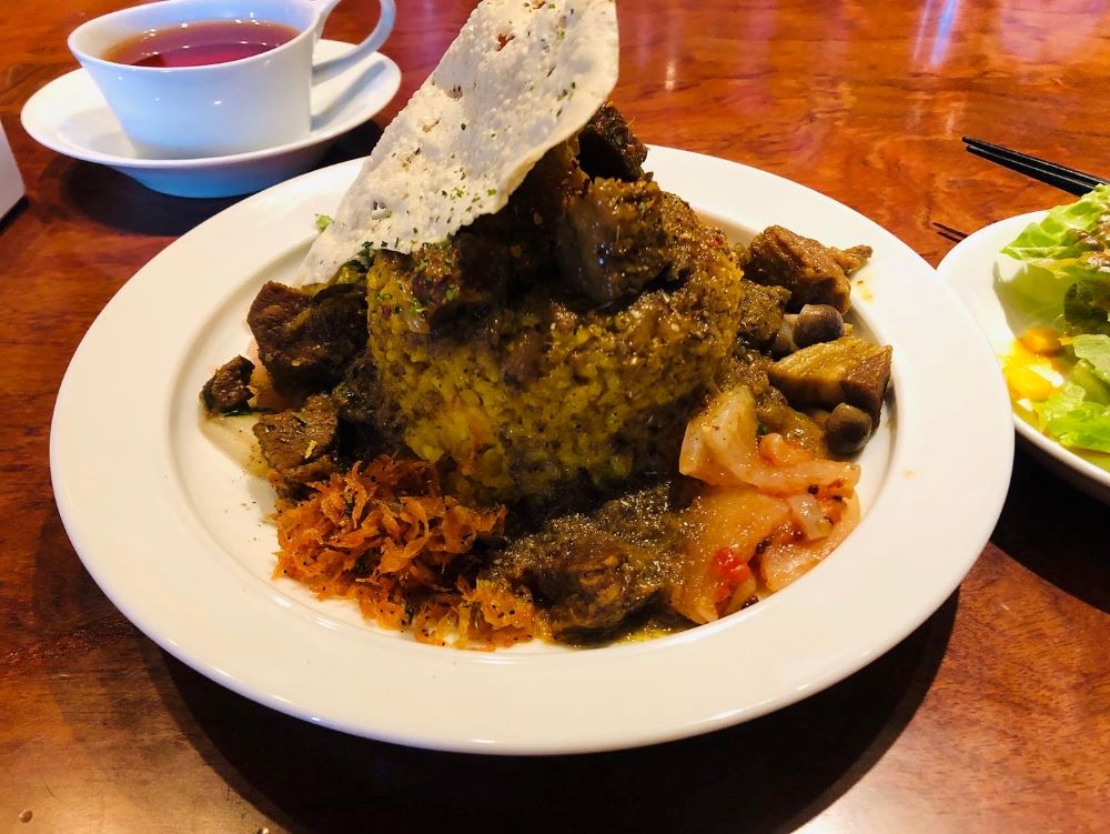 お肉、ゴロゴロで、ピリッとスパイシー、周りのトッピングも絶品です。