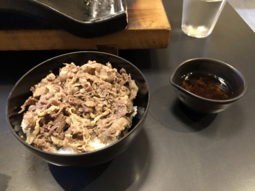 牛肉、ネギなどの具をのせ、温かいつゆでいただく