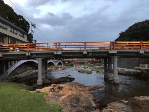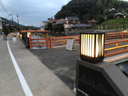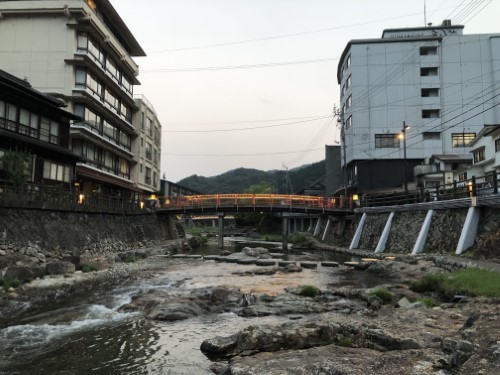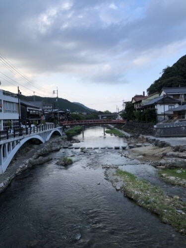 旅館街の中心を流れる音信川(おとずれがわ)の両岸には、
