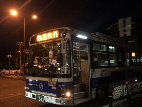 温泉街の夜景も見ずに、次の代行バスに乗って、