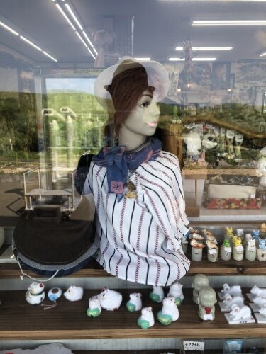 マネキンは、お土産店の店舗内にいらっしゃいました。