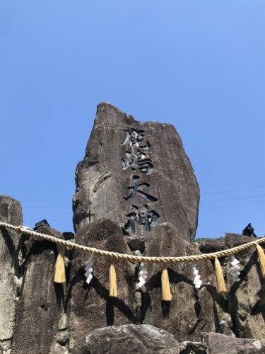 祈祷殿前の巨大な石碑には南面(参道側)に「鹿嶋大神」、