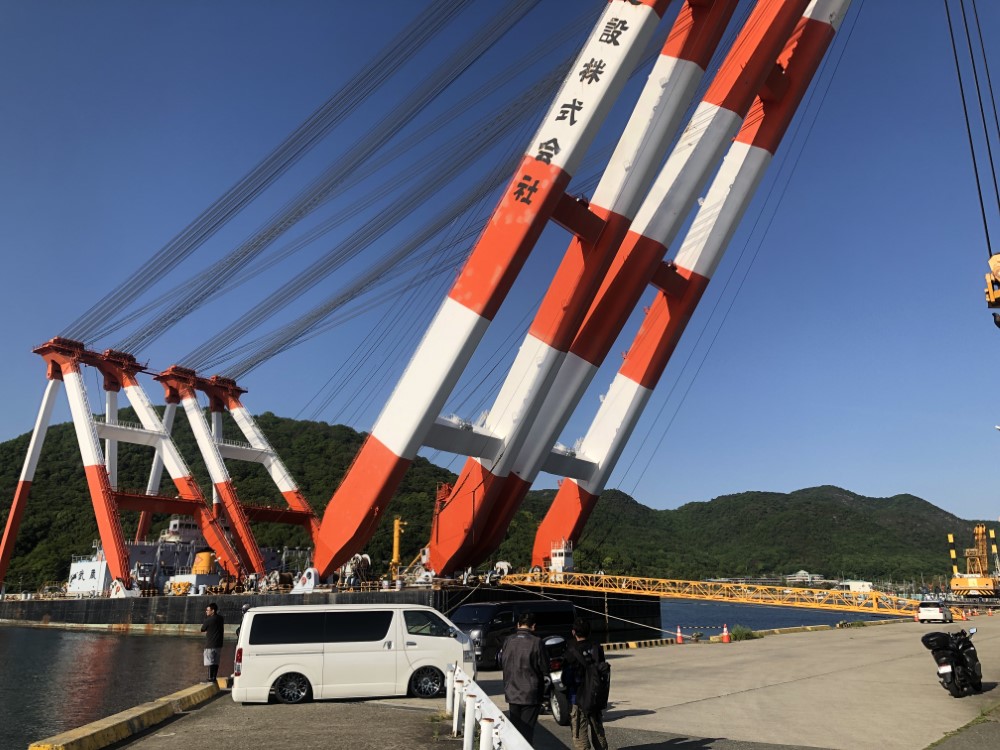 相生の埠頭で、デカいクレーン船を発見びっくり