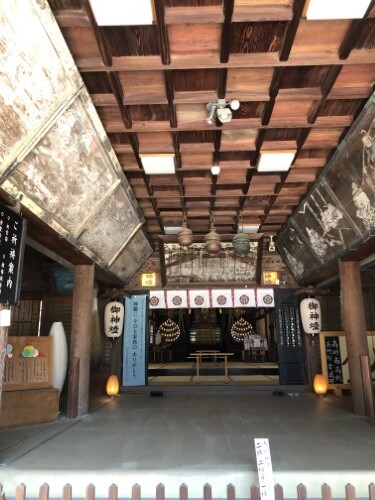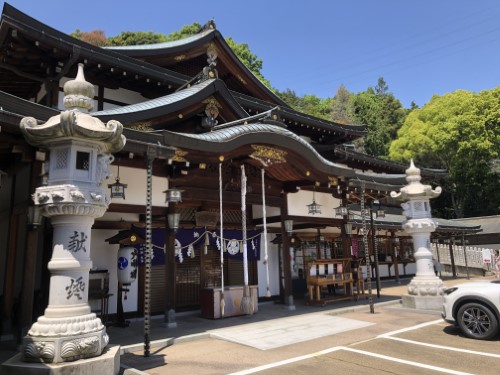 巨石碑の横の祈祷殿では、 車の交通安全祈祷の